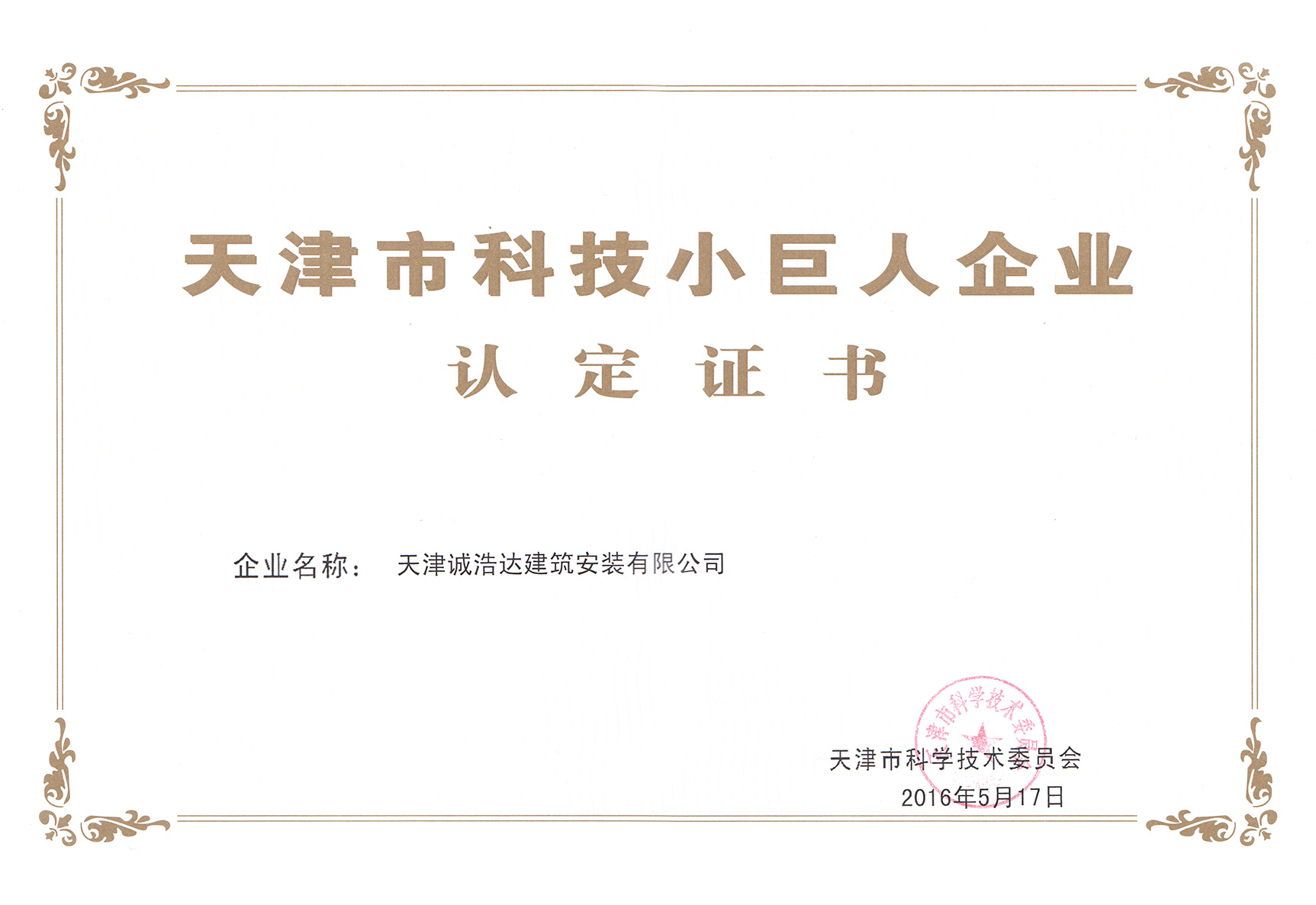 榮譽資質(zhì):天津市科技小巨人企業(yè)